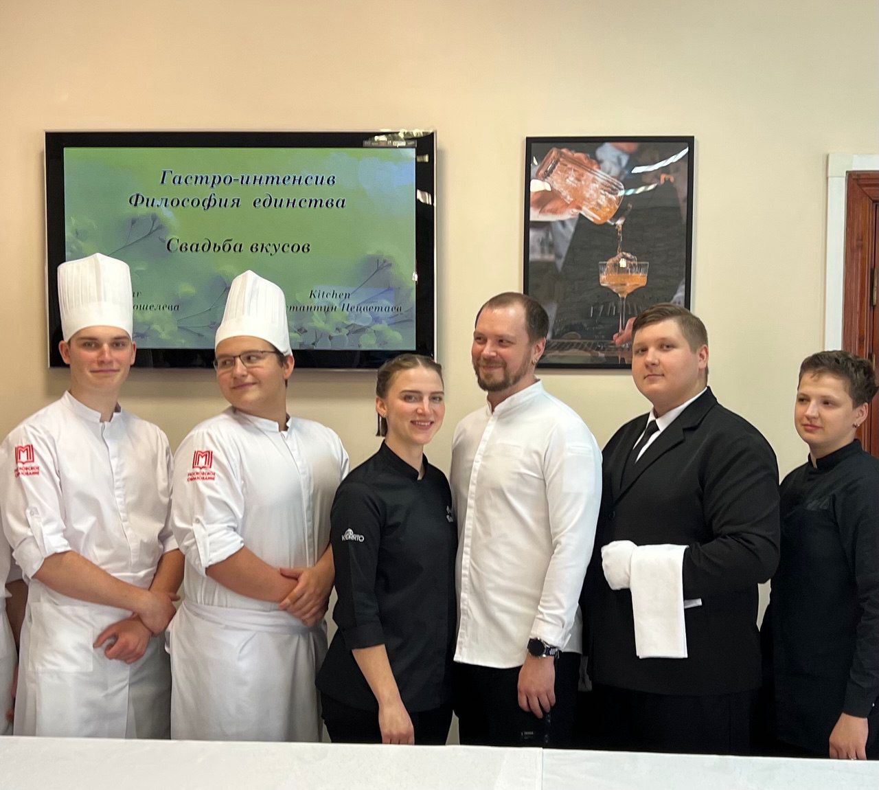 Гастро-интенсив «Философия единства. Свадьба вкусов», который прошел 24 июня в колледже «Царицыно», стал ярким событием благодаря участию нашему амбассадору Алёне Кошелевой - вице Чемпионки мира среди барменов 2024, и Константина Нецветаева, шеф-повара ресторана «Quadrum» в «Four Seasons Hotel». Формат этого гастро-интенсива предусматривал сочетание работы шеф-повара и бармена, создавая уникальные пары блюд и коктейлей.