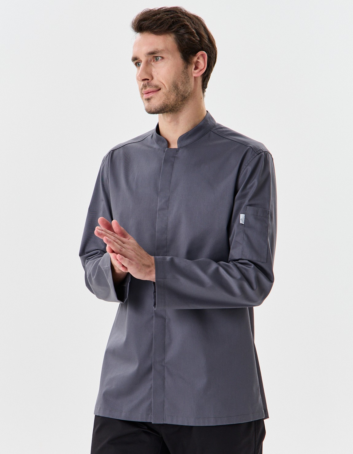 Стильная и элегантная модель кителя с длинным рукавом и сетчатой вставкой на спине. Куртка застегивается на кнопки и дополнена карманом на левом рукаве для личных вещей. Возможно нанесение именной вышивки или логотипа заведения.